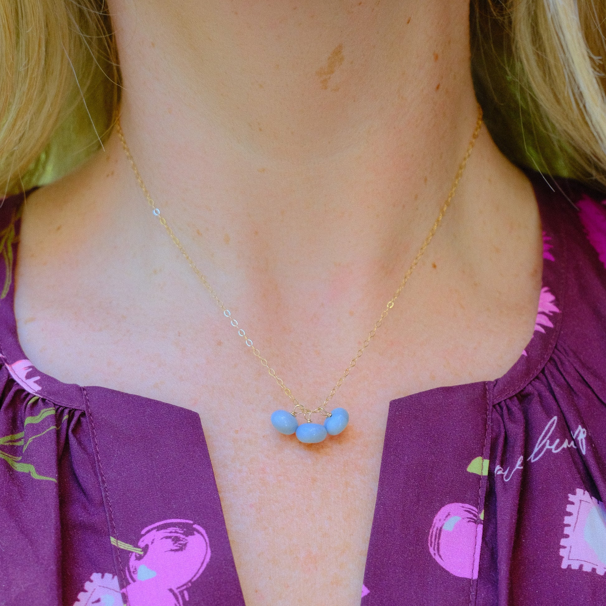 6mm Denim Opal stones free dangling on our simple, everyday chain.