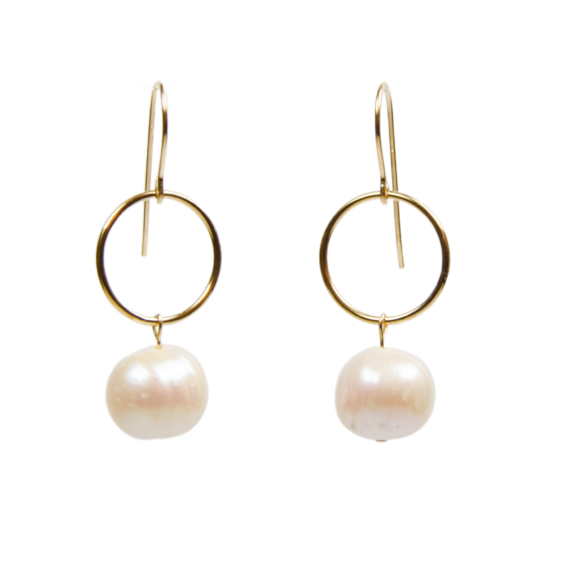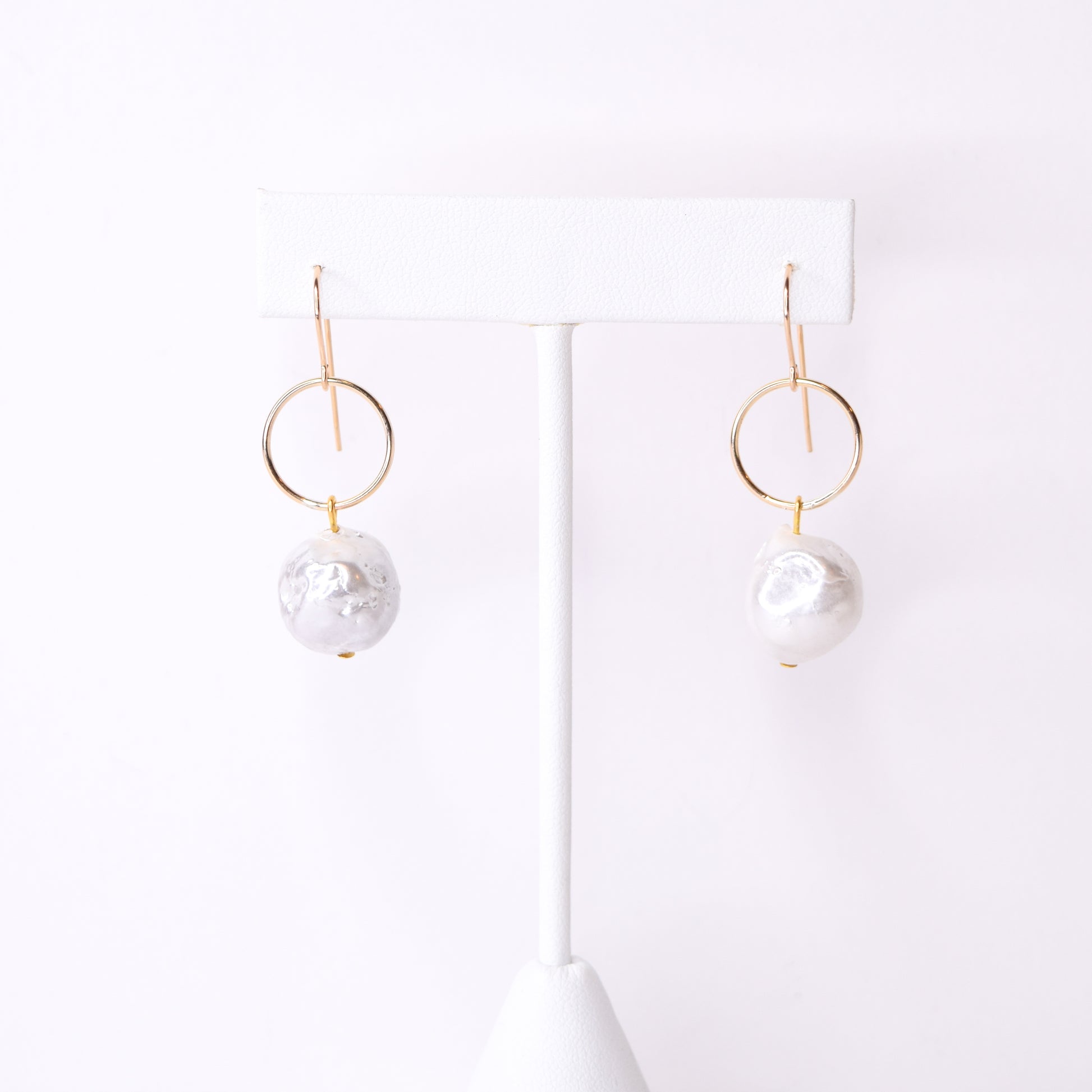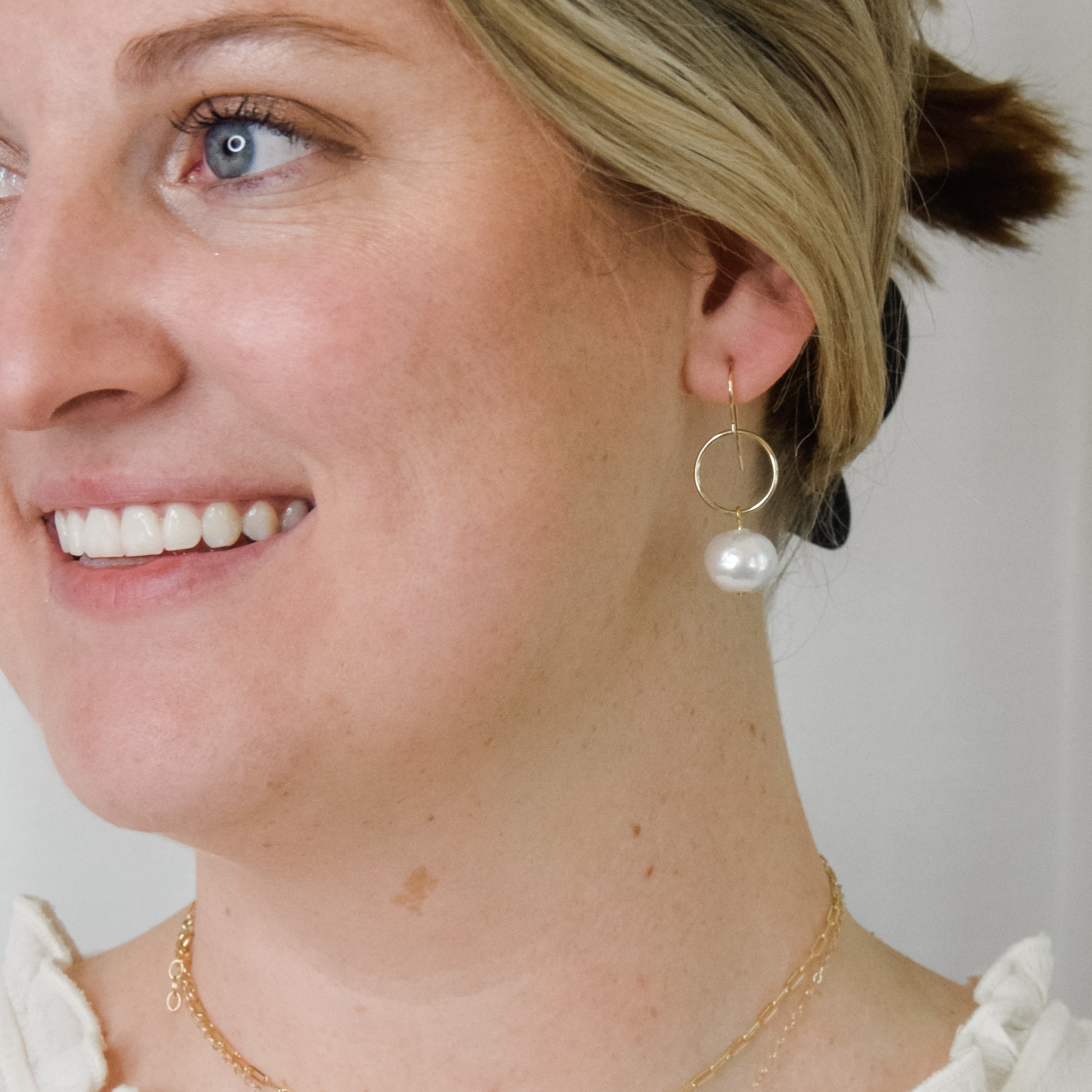 15mm light grey freshwater pearl and 14k gold filled 15mm ring on 14k gold filled earring wire