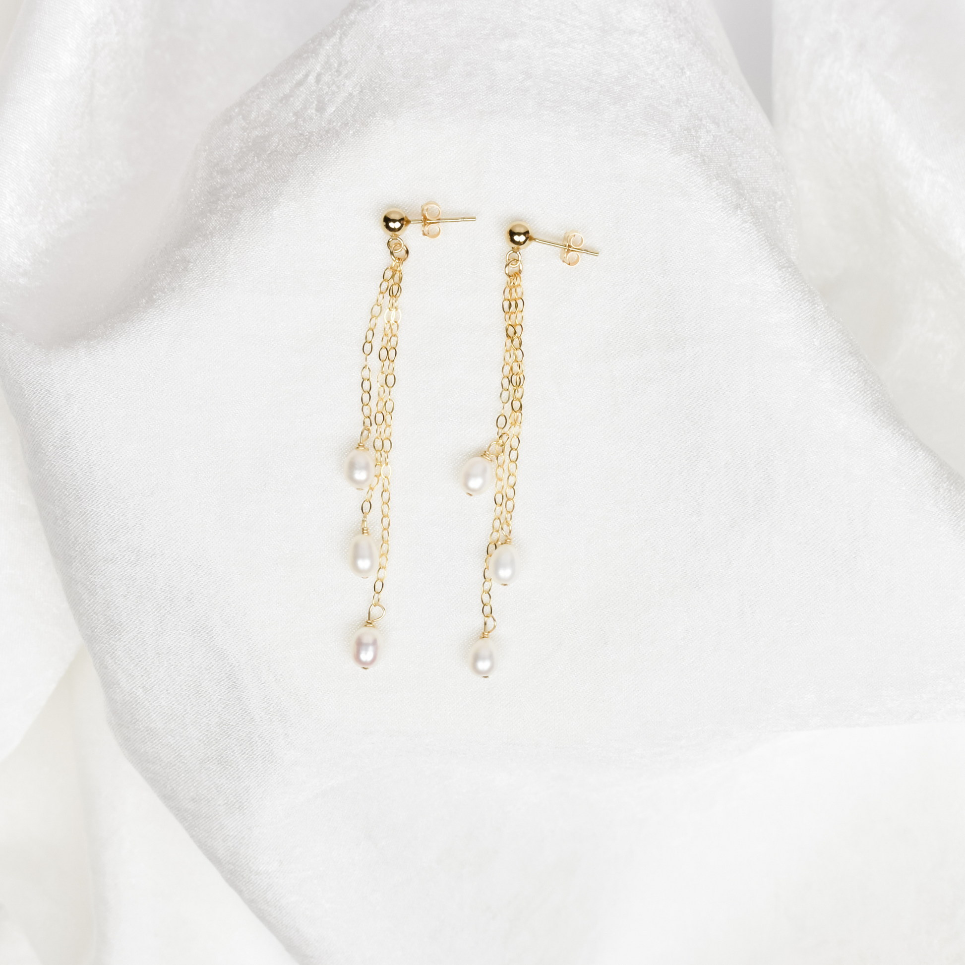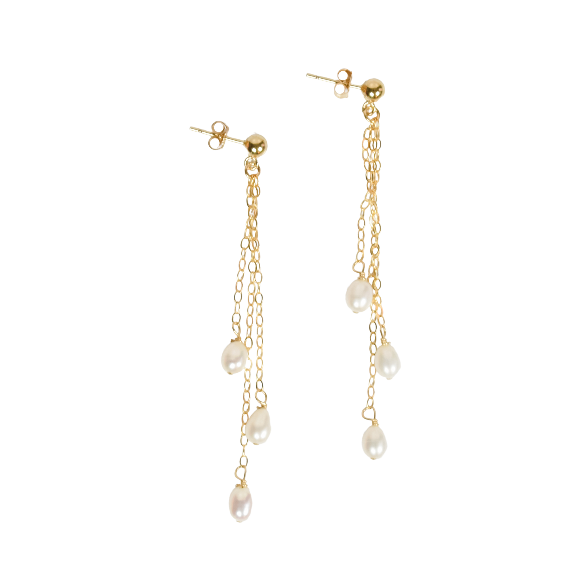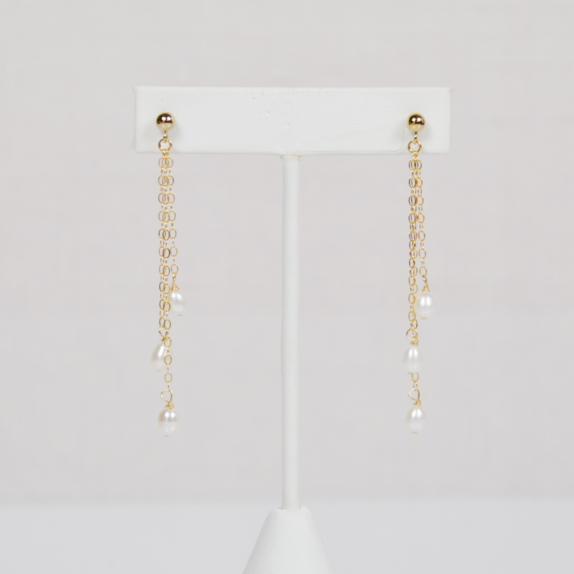 14k Gold Filled Ball Stud Earring with 3 varying length pearl drops.